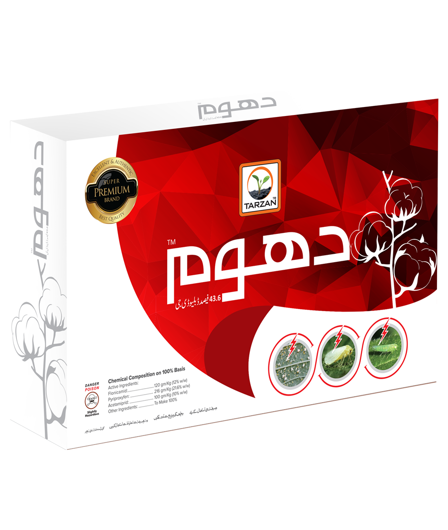 Dhum 68% WDG is a highly effective insecticide containing Diafenthiuron at a concentration of 40%, Flonicamid at a concentration of 10%, and Pyriproxyfen at a concentration of 18% in a Water Dispersible Granule (WDG) form. This innovative formulation provides comprehensive control against a broad spectrum of pests in various crops. Dhum 68% WDG ensures targeted and efficient suppression of harmful insects, offering farmers a powerful solution for pest management and crop protection.