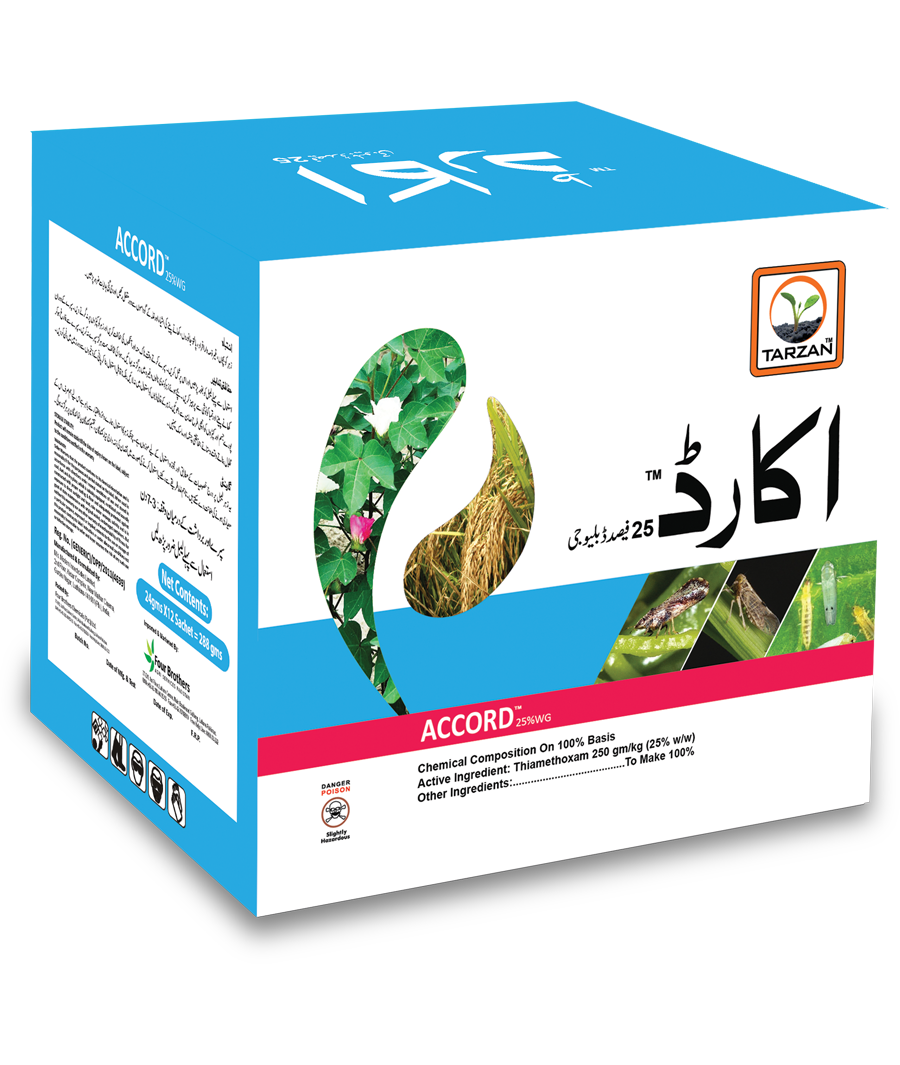 ایکارڈ 25 ڈبلیو ڈی جی ایک طاقتور کیڑے مار دوا ہے جس میں تھیامیتھوکسام 25 فیصد کے ارتکاز میں واٹر ڈسپرسیبل گرینول (WDG) فارم میں ہوتا ہے۔ یہ کیڑے مار دوا مختلف فصلوں میں کیڑوں کے وسیع پیمانے پر کنٹرول کے لیے تیار کی گئی ہے۔ ایکارڈ 25 ڈبلیو ڈی جی نقصان دہ کیڑوں کے ہدف اور مؤثر طریقے سے دبانے کو یقینی بناتا ہے، کسانوں کو کیڑوں کے انتظام اور فصلوں کے تحفظ کے لیے ایک قابل اعتماد حل فراہم کرتا ہے۔