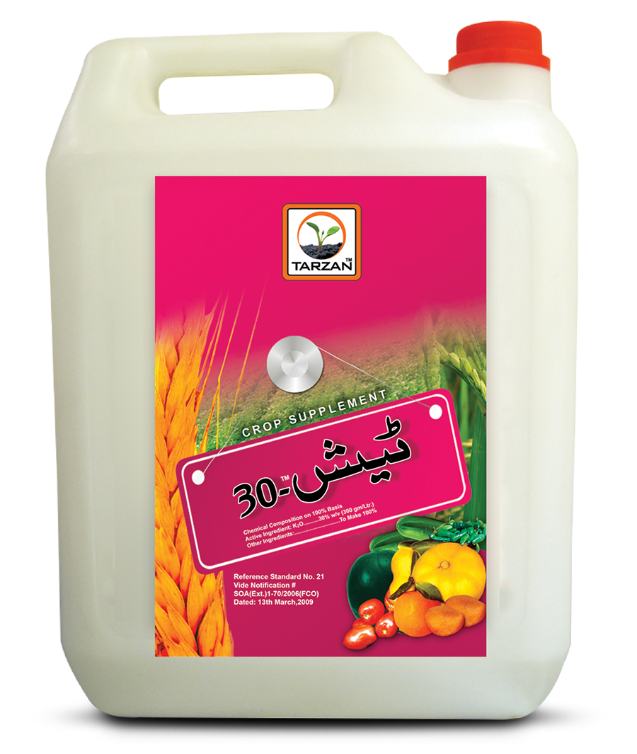 • Tash 30 موڈ آف ایکشن میں پودوں کے ضروری افعال کے لیے پوٹاش کا ایک مرتکز ذریعہ فراہم کرنا، صحت مند نشوونما اور بہتر تناؤ کی لچک کو یقینی بنانا شامل ہے۔ مائع کی تشکیل غذائی اجزاء کے جذب کی کارکردگی کو بڑھاتی ہے، یہ فصل کی غذائیت کو بہتر بنانے میں ایک قیمتی جزو بناتی ہے۔